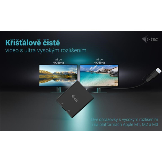 - Adaptér podporuje rozlišení až 2x 4K/60 Hz bez ohledu na výkon grafické karty vašeho notebooku.