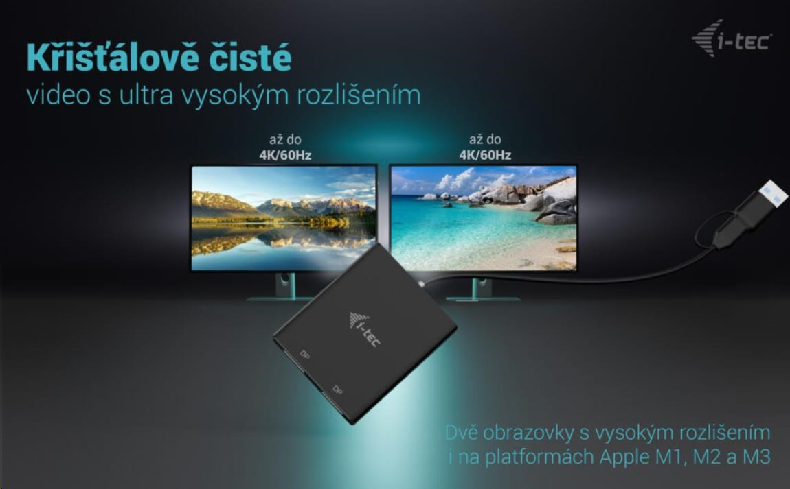 - Adaptér podporuje rozlišení až 2x 4K/60 Hz bez ohledu na výkon grafické karty vašeho notebooku.