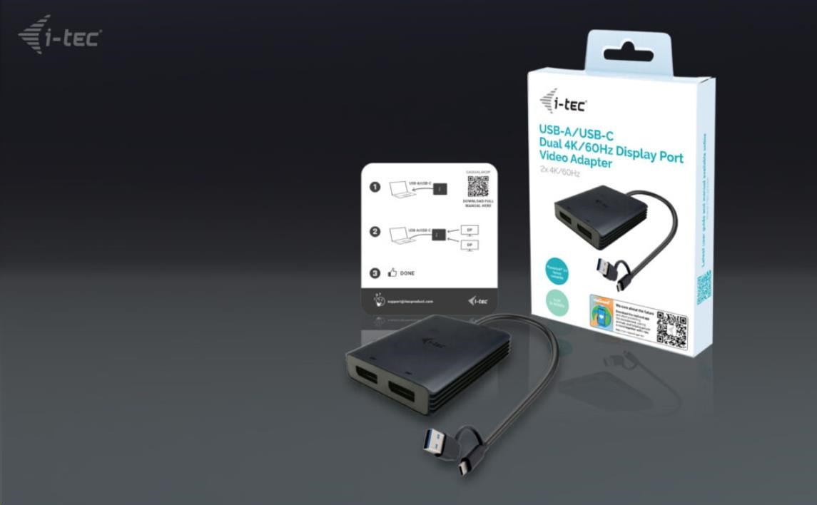 i-tec USB-A/USB-C Dual 4K DP Video Adapter
