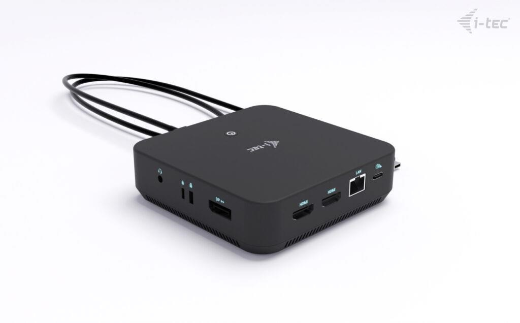 Vysoce výkonná kancelářská dokovací stanice USB-C s podporou až 3 externích monitorů s rozlišením 4K. Stanice je kompatibilní s jakýmkoli notebookem vybaveným portem USB-C, USB4 nebo Thunderbolt 3/4/5. Samozřejmostí je také možnost nabíjení notebooku či tabletu výkonem až 100 W.