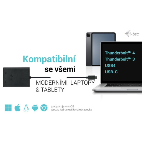 • Lze připojit ke všem portům USB-C: USB-C, USB4, Thunderbolt 3 a Thunderbolt 4.