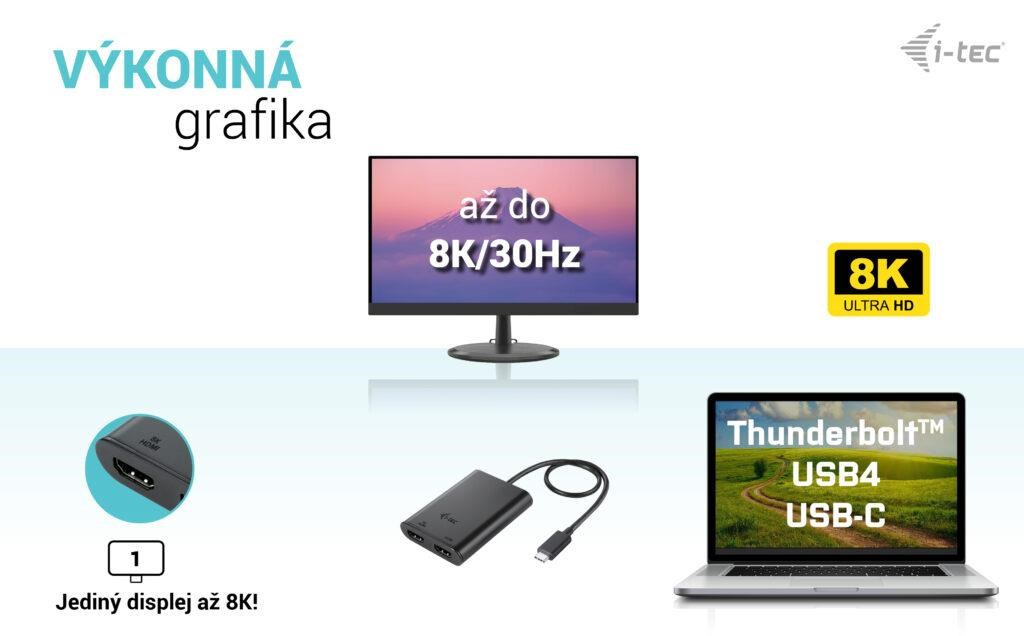 • Adaptér podporuje rozlišení až 1x 8K / 30 Hz nebo 2x 4K / 60 Hz