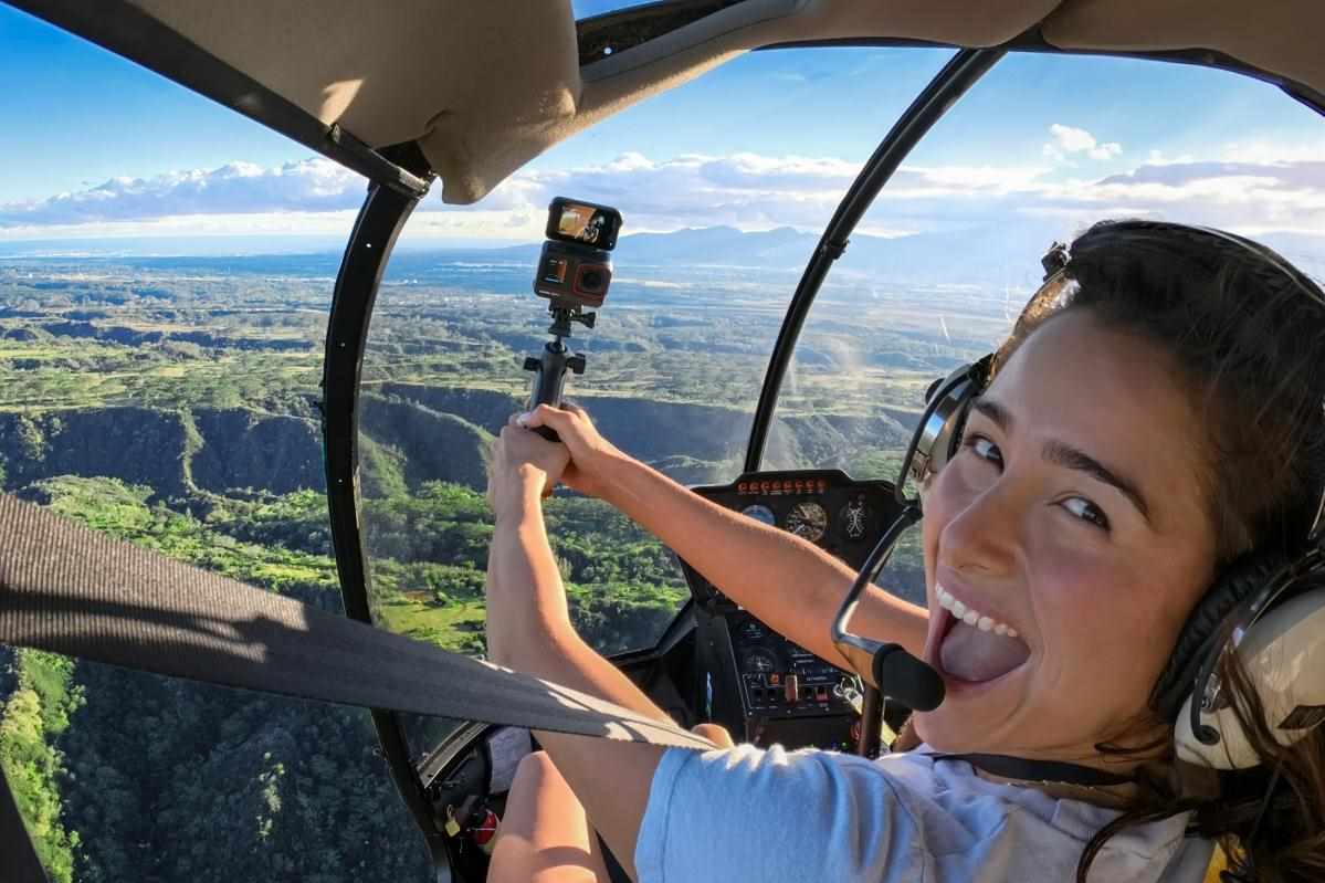 Ovládání gesty pro snadné spuštění/zastavení nahrávání. Oceníte v případech skupinových záběrů. Ovládání gesty vyžaduje, aby obě ruce a hlava byly v záběru viditelné. Ovládání funguje, i když má uživatel na hlavě helmu nebo rukavice. Hlasové ovládání 2.0 má zlepšený algoritmus hlasového rozpoznání povelů.