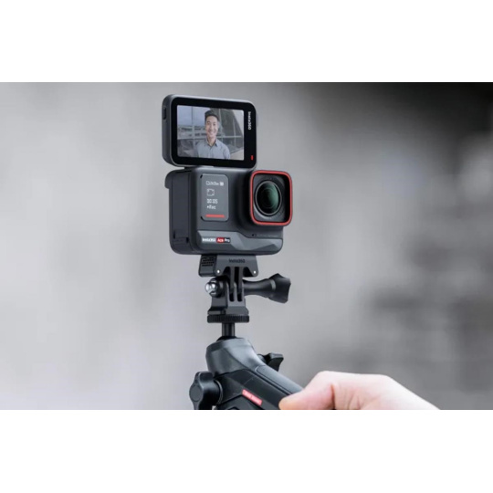 Multifunkční držák, který funguje jako tripod, selfie tyč a magic arm. Plně otočný kloub umožní nastavení úhlu kamery. "Mantis" mód umožní zavěšení kamery a získání unikátních záběrů..