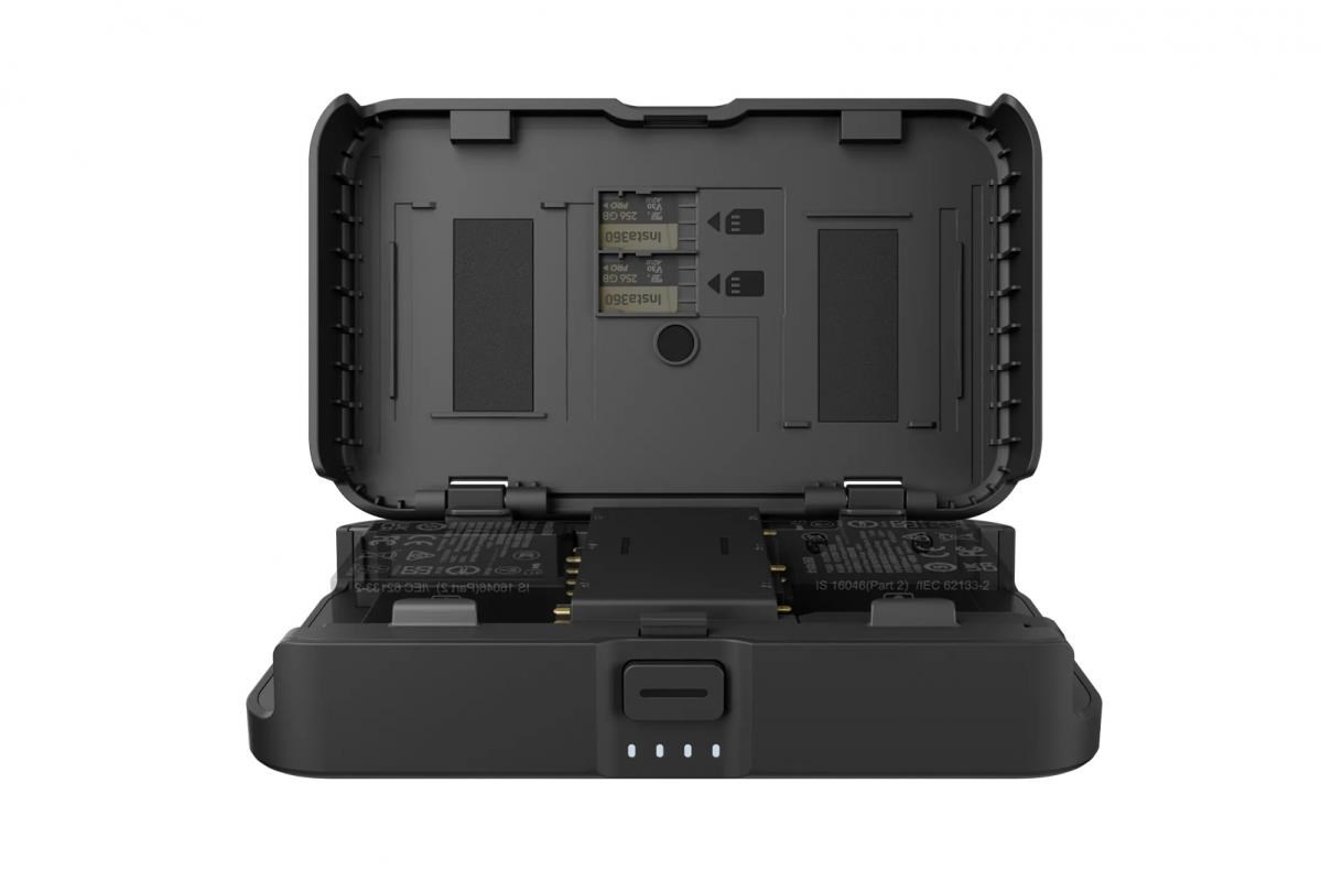 Praktické nabíjení dvou baterií s úložným prostorem pro dvě microSD karty. Kompatibilní s bateriemi Insta360 Ace Pro 2, Ace Pro, Ace, X4 a X3. Vestavěná baterie 10 000 mAh zajišťuje nepřetržitý výkon..