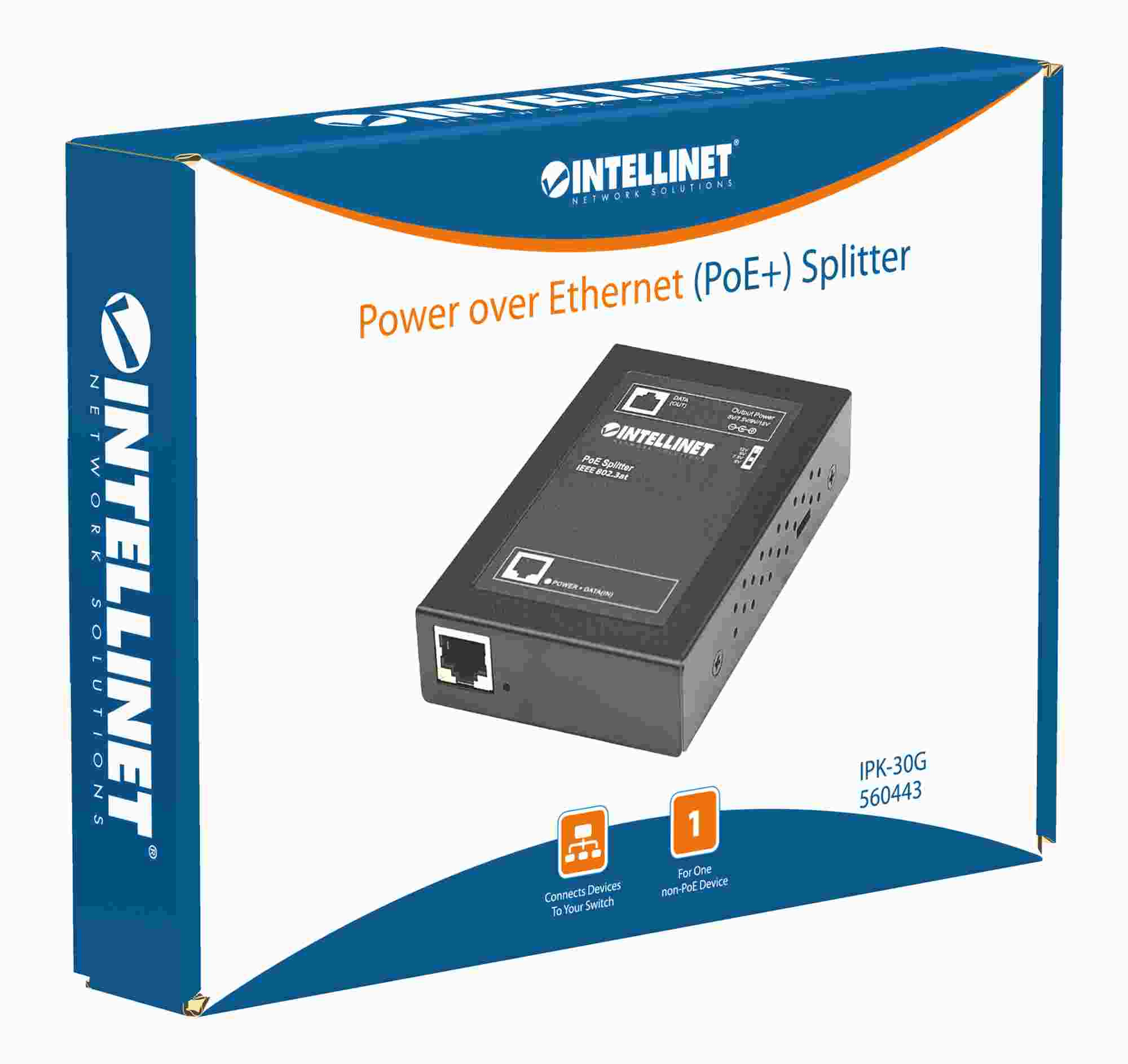 Intellinet 1-port PoE+ Power over Ethernet Splitter, 802.3at/af