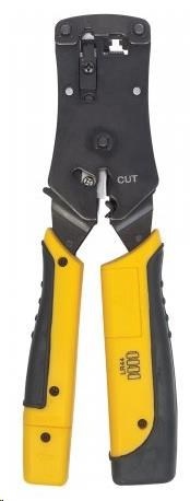 Univerzální modulární krimpovací nástroj na zástrčky a tester kabelů od společnosti Intellinet Network Solutions je vysoce kvalitní univerzální krimpovací nástroj, tester síťových kabelů, odizolovač vodičů a řezačka. Síťoví profesionálové mohou snadno ukončovat a testovat síťové kabely na spojitost vedení, otevřené konfigurace, zkraty a chybné zapojení. Tento krimpovací nástroj a tester kabelů, který je vynikajícím doplňkem každé sady síťového nářadí, dokáže rychle zkontrolovat zakončení předtím, než pracovníci IT nainstalují přizpůsobený kabel. Umožňuje také rychlou identifikaci a opravu problémů s připojením ve stávající instalaci. Profesionální modulární krimpovací nástroj vše v jednom s funkcemi řezání, odizolování a testování kabelů. Kompatibilní s konektory RJ45, RJ11, RJ12 a RJ22 Jediným nástrojem lze stříhat, odizolovávat, ukončovat a testovat kabely. Testuje propojovací kabely a instalovanou kabeláž Funkce ráčny Tříletá záruka.