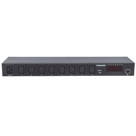 Intellinet rozvodný panel PDU, 8x C13 zásuvka, rack 1U, odpojitelný kabel 16A, monitoring