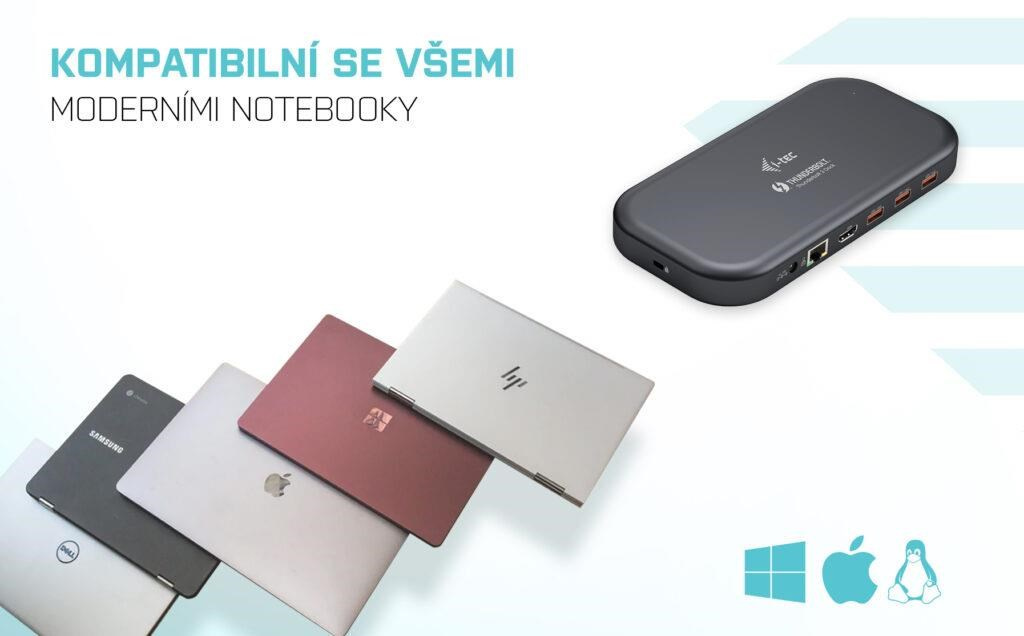 • Kompatibilní s notebooky a tablety s rozhraním Thunderbolt, USB4 a USB-C. (Hostitelské zařízení musí podporovat režim DisplayPort Alt)