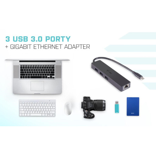 Kombinace pasivního HUBu s Gigabit Ethernet adaptérem, pro snadné a rychlé připojení vašich oblíbených USB zařízení k notebooku, tabletu, PC nebo smartphonu s novým USB-C nebo Thunderbolt 3 rozhraním, a pro vysokorychlostní přístup k síti a internetu přes Gigabit Ethernet port. HUB nabízí tři USB 3.0 porty s funkcí Plug & Play a standardním USB nabíjením – automaticky detekuje, jestli je připojeno zařízení pro USB nabíjení. Rozhraní USB 3.0 je důležité zejména pro datové přenosy z USB paměťových karet a flash disků, kde se nejvíce využije jeho vysoká přenosová rychlost.