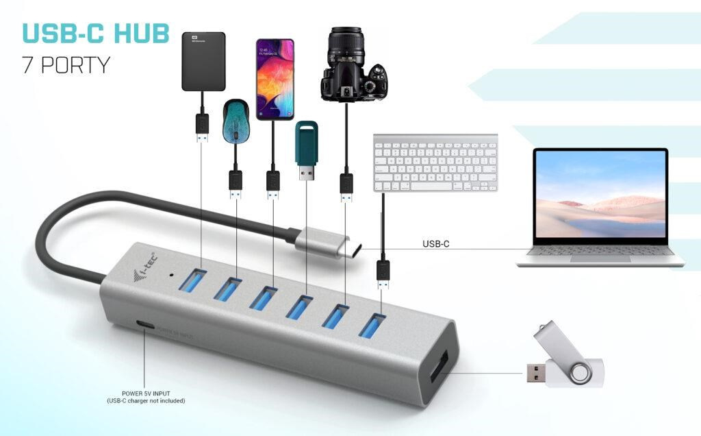 - Nabíjecí HUB USB-C až pro 7 zařízení
