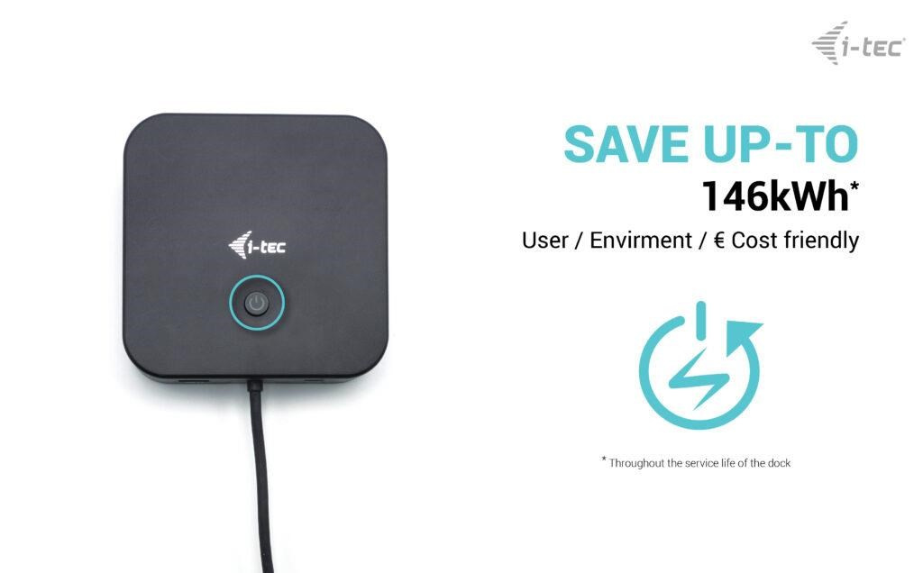 Úsporný vypínač pro snížení spotřeby energie, když se dokovací stanice nepoužívá.