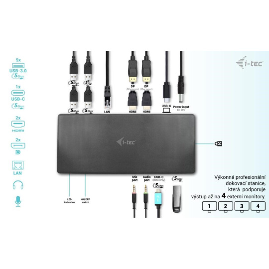 i-tec USB-C Quattro Display Docking Station s Power Delivery 85 W