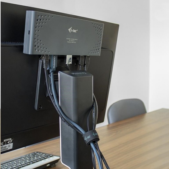 Nedílnou součástí moderní kanceláře je komfortní, čistý a efektivní design pracovní plochy. Díky chytrému využití VESA standardu nyní můžete svůj pracovní stůl zorganizovat mnohem lépe, a plochu vašeho pracovního prostředí si účinně zvětšit. Umístěním dokovací stanice (a kabelů) za monitor si zvýšíte nejen komfort, ale zároveň i minimalizujete riziko krádeže.