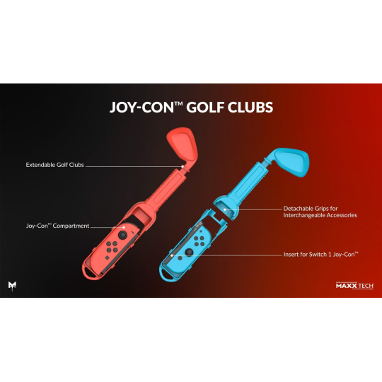 Obsah balení: 2 závodní volanty, 2 tenisové/badmintonové rakety, 2x 2v1 popruhy, 2 meče, 2 golfové hole, 2 pistole, 2x rukojetí Joy-Con, 2x adaptéry.