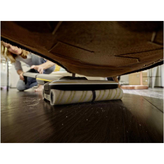 ** Čistič podlah Kärcher zkracuje dobu čištění až o 50 %, protože běžné nečistoty z domácnosti lze odstranit z tvrdých podlah v jediném kroku, aniž by bylo nutné před vytíráním vysávat.