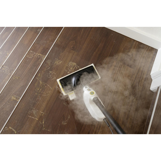 Kompaktní parní mop SC 1 Multi & Up čistí bez použití chemikálií a lze jej v mžiku použít k hloubkovému úklidu celého domu, a to buď jako multifunkční ruční parní čistič, nebo jako všestranný parní mop 3 v 1 díky sadě velkých podlahových hubic EasyFix, která je součástí balení. Pracuje ve třech různých polohách zařízení - horní, střední a dolní - a dokonale se přizpůsobí individuálním požadavkům. Důkladné čištění parním čističem Kärcher odstraní z tvrdých povrchů až 99,999 % virů* a 99,99 % všech běžných domácích bakterií**. Díky kompaktnímu a praktickému designu se přístroj pohodlně používá a snadno se skladuje i v těch nejmenších prostorách. SC 1 Multi & Up je připraven k použití během 30 sekund a díky odnímatelné nádržce na vodu se snadno doplňuje - to znamená, že nemusíte dlouho čekat ani přerušovat práci. Vyměnitelná odvápňovací kazeta zajišťuje automatické odstraňování vodního kamene, čímž je životnost výrobku pětkrát delší. Světelný LED displej s ovládacím panelem umožňuje jednoduché a bezproblémové ovládání. Na displeji jsou vždy zobrazeny různé režimy, jako je ohřev, připravenost k použití, parní režim a termín výměny patrony.