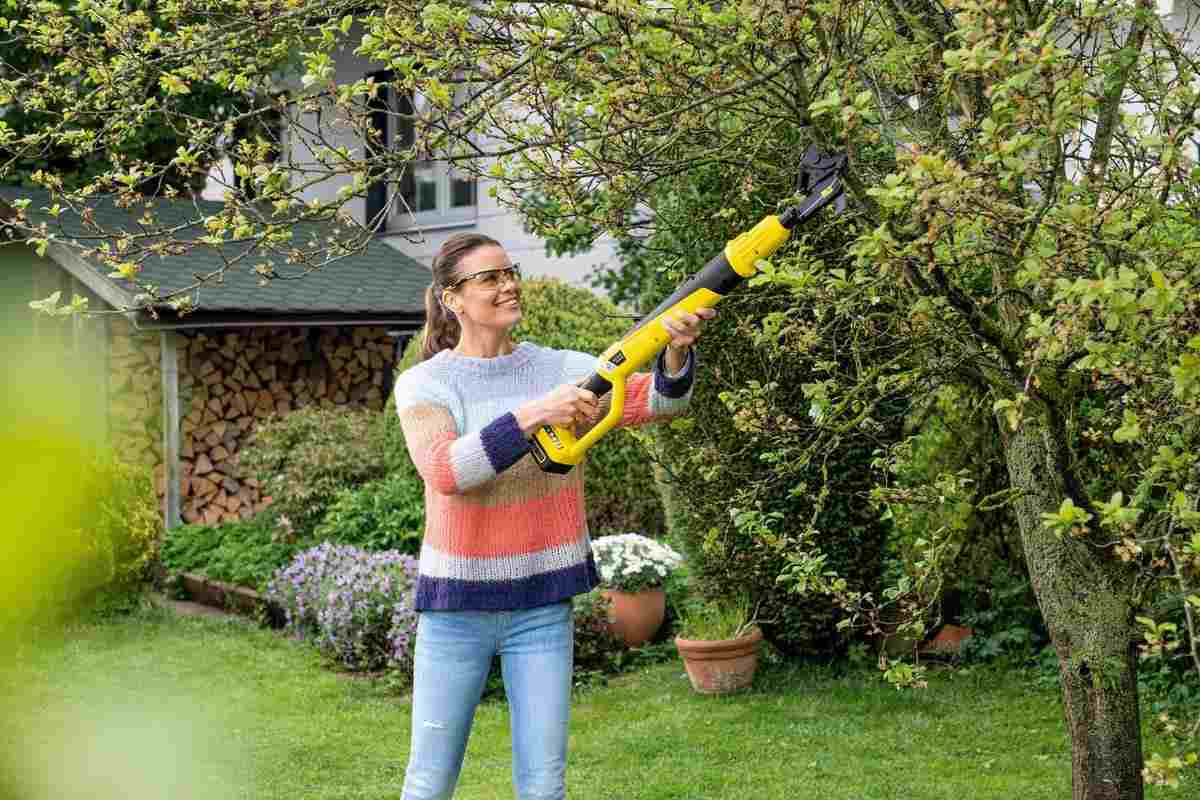 Nůžky Kärcher si bez námahy poradí s větvemi o průměru až 3 cm a díky vysoce kvalitní dvojité čepeli je možné šetrně stříhat bez vynaložení velké síly. Délka těla produktu je 91 cm, proto se pohodlně drží v dlaních a umožní práci i s těžko dostupnými větvemi. A pomocí háku je možné ze stromu uvolnit zaseknuté větve.