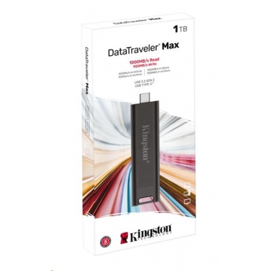 DataTraveler® Max značky Kingston je vysoce výkonný flash disk USB Type-C®1, který využívá nejnovější standard rozhraní USB 3.2 2. generace pro rekordní rychlost čtení/zápisu až 1000/900 MB/s2. Jedinečné pouzdro s prolisem, navržené s ohledem na přenosnost a pohodlí, chrání konektor, když ho nepoužíváte, a lze ho snadno přesunout jediným pohybem. DT Max nabízí špičkový výkon a rozšířené kapacity až 1 TB3, což z něj činí ideální řešení pro přenos a ukládání velkých digitálních souborů, jako jsou fotografie v rozlišení HD, videa v rozlišení 4K/8K, hudba a další.