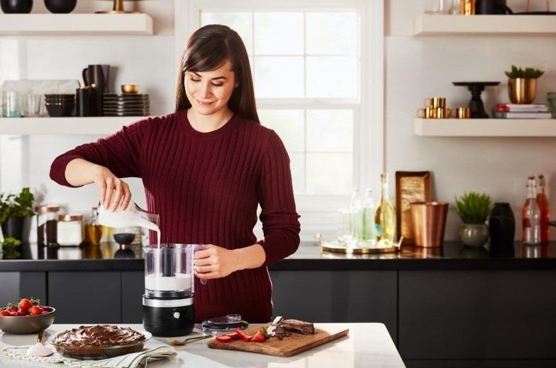 Hledáte praktického pomocníka do vaší kuchyně? Vsaďte na poctivou přípravu, která vede k těm nejlepším a nejchutnějším výsledkům. Kuchyňský robot KitchenAid 5KFCB519EBM je bezdrátový model food processoru, který se stane nepostradatelnou součástí vaší kuchyně. Zrychlí a zefektivní ty činnosti, které při přípravě jídel zabírají spoustu času. Pracovní nádoba o objemu 1,18 l je opatřena víkem s otvorem, kterým lze postupně přidávat ingredience bez nutnosti zastavení provozu. Požadovaných výsledků dosáhnete díky dvěma rychlostem a pulzní funkci, počet otáček je v rozmezí 2 600 až 3 500 ot./min. Velkou přednostní food processoru jsou také kompaktní rozměry a nízká hmotnost, představuje perfektní řešení i do malých domácností. Pokud chcete volně tvořit bez omezování přívodním kabelem, je pro vás tato pomocná síla jako dělaná.