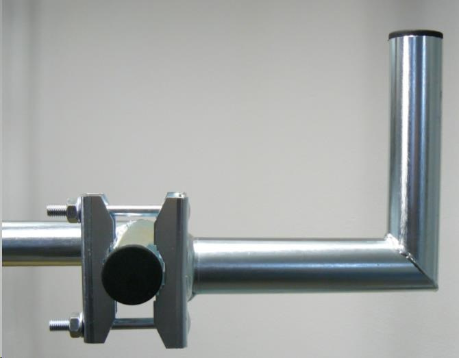 Držák vhodný k připevnění na balkónové zábradlí nebo vodorovnou trubku, pro uchycení satelitních parabol a větších antén.| Technické specifikace: | |