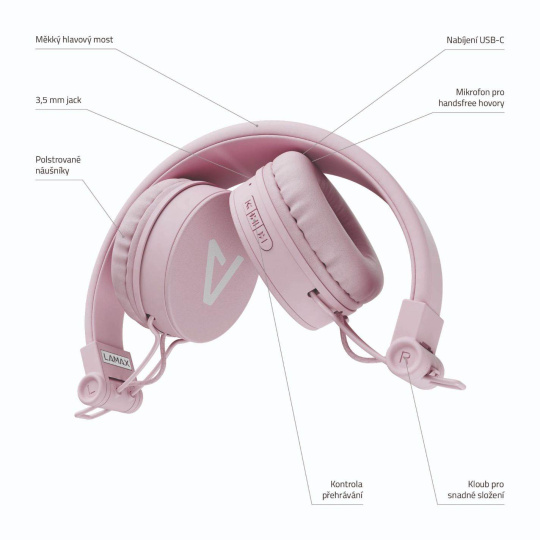 LAMAX Beat Blaze2 náhlavní sluchátka, USB-C - růžová