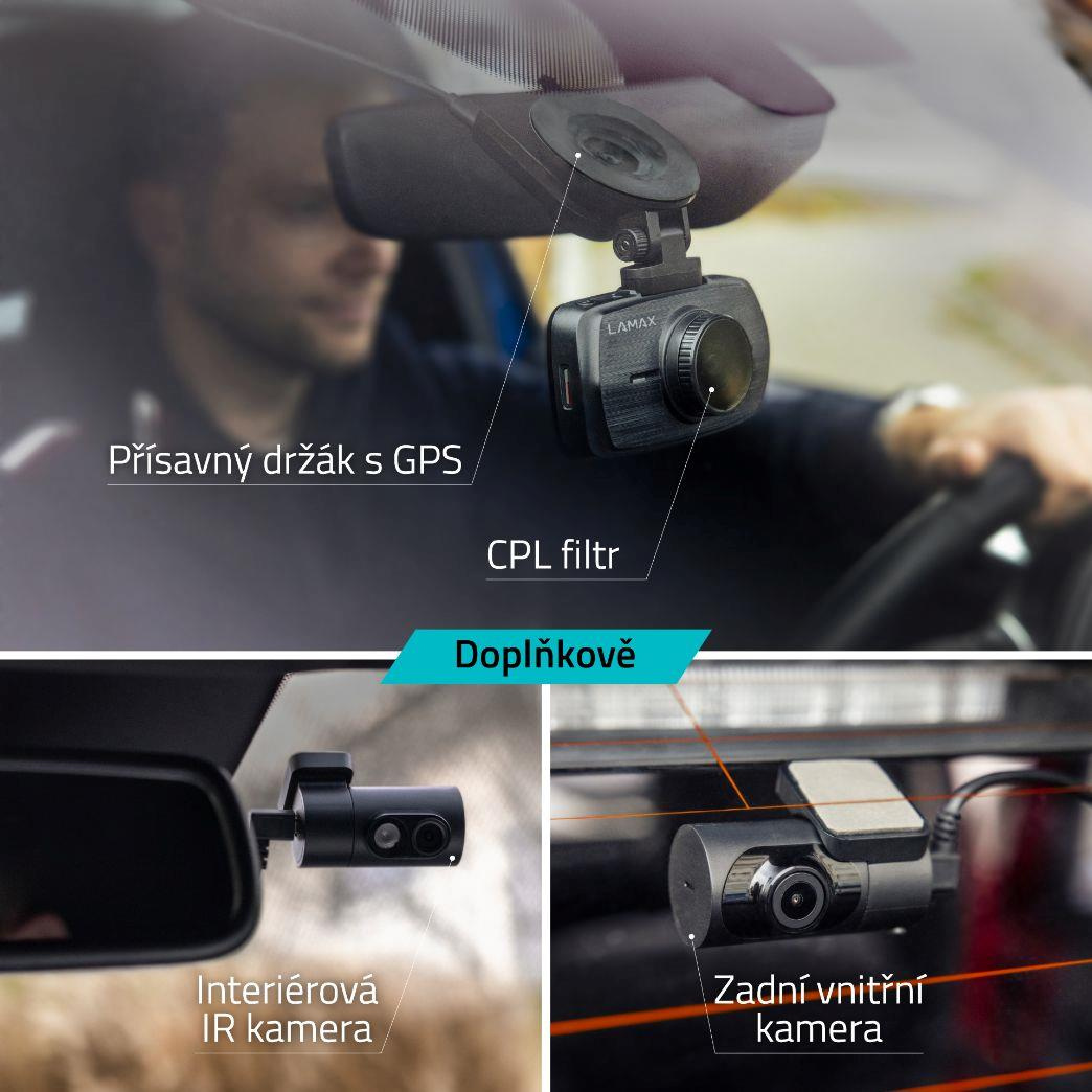 Dokoupit lze bohaté příslušenství, včetně zadní kamery, interiérové kamery s infrared přísvitem pro super noční záběry, CPL filtru nebo přísavného držáku s GPS.