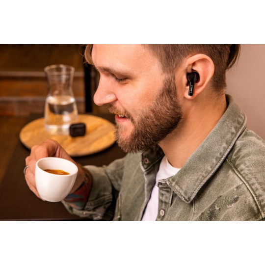 Bezdrátová TWS sluchátka, do uší, 8h výdrž/1 nabití, 40 hodin výdrž celkem, Bluetooth 5.1, dosah až 10 metrů, dotykové ovládání, USB-C, LAMAX BeatBass® technologie, automatické párování, herní režim, malé nabíjecí pouzdro, ukazatel nabíjení, kodeky AAC a SBC, podpora hlasových asistentů, náhradní náušníky..... více