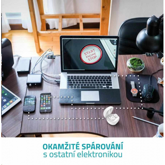 Jakmile špunty vyndáš z pouzdra, začnou hledat tvůj zdroj (telefon, tablet, počítač). Než je dáš do uší, už jsou ready na tvůj playlist.