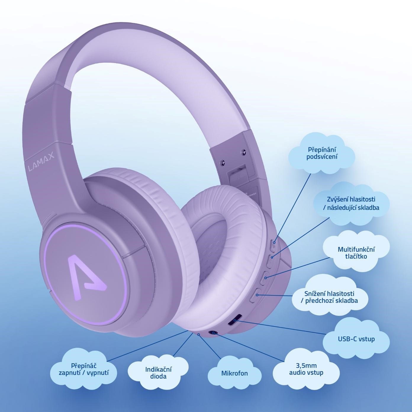 Hravé LED podsvícení promění každý poslech v barevný zážitek. Sluchátka se rozzáří při hudbě a okamžitě upoutají pozornost. Přitom však zůstávají maximálně pohodlná a bezpečná. Měkké náušníky netlačí ani při delším nošení a hlasitost je nastavena tak, aby byla šetrná k dětskému sluchu.