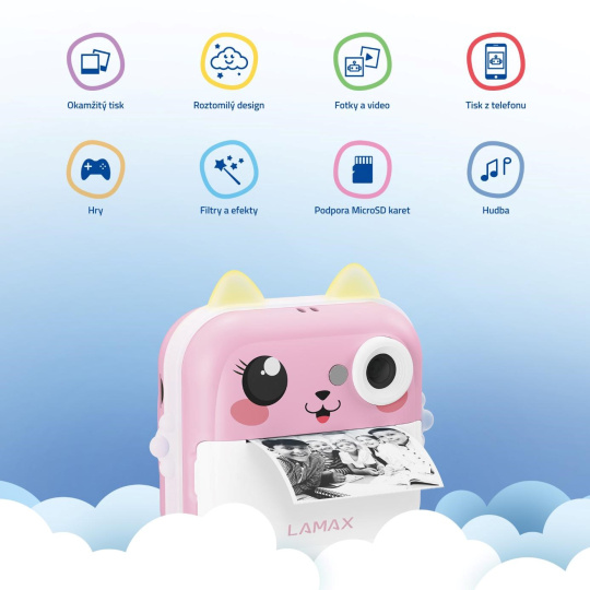 Objevte kouzlo zachycených momentů, které si vaše děti vytisknou během pár vteřin. Dětský fotoaparát LAMAX InstaKid2 Plus s okamžitým tiskem není jen roztomilý na pohled. S českou aplikací, vysokým rozlišením fotek i videa a sadou kreativních nástrojů se stává zábavným parťákem na výlety i do pokojíčku. Děti si s ním nejen vyfotí své zážitky, ale hned si je i vytisknou,vybarví přiloženými fixami a nalepí do deníku nebo kamkoliv budou chtít. Pomocí aplikace pak zvládnou tisknout fotky a poznámky z telefonu, skenovat texty ze sešitů, překlápět snímky do animovaného stylu nebo si s pomocí AI vybarvit černobílé obrázky. A když si od focení chtějí na chvíli odpočinout? O zábavu se postarají i vestavěné hry.LAMAX InstaKid2 Plus fotoaparát podporuje kreativitu, samostatnost i hravé učení a kdo ví, třeba právě tento foťáček odstartuje kariéru vašeho dítěte ve světe fotografií a filmu.