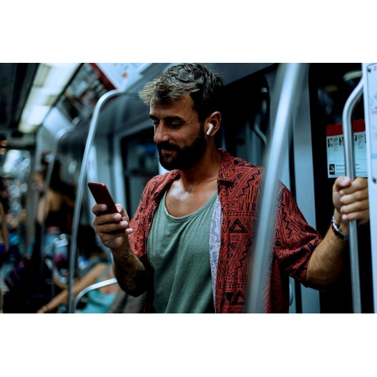 Reálné ANC si asi nepředstavíš, ale rozhodně hned poznáš jeho přínos. Dokonale totiž potlačí okolní hluk, a to díky 2 speciálním mikrofonům v každým sluchátku a bez zkreslení zvuku. Nákupy nebo chůze přes přechod jsou chvíle, kdy je lepší vnímat okolí, proto si aktivuj Transparency mode, který se o to postará. Mód propustnosti zesílí mikrofony, můžeš tak slyšet dění kolem a klidně komunikovat s okolím. K dokonale čistýmu zvuku přispívají i kodeky AAC a SBC.