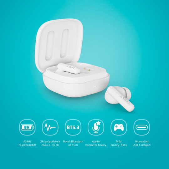 Představ si ten nejlepší zvuk, co můžeš, a ještě mu kousek přidej. Pak to celý zabal do top designu a dostaneš LAMAX NeoPods1 ANC. Bezdrátová špuntová sluchátka s nožičkou do uší, co mají výdrž až 8 hodin a přes Bluetooth 5.3 se bleskově spojí s tvým telefonem. Takový požitek z poslechu jsi ještě neměl a gameři si ho o kus zvýší díky hernímu módu. Přepínání tracků i přijímání hovorů zvládneš dotykem, radost ti udělá taky kvalitní mikrofon. Fakt si užiješ dokonale čistej a vyrovnanej zvuk, AAC, SBC kodeky, ANC pro potlačení okolního hluku a Transparency mode, co zařídí zároveň bezpečnej poslech. Cestuj, sportuj nebo třeba pracuj v rytmu a se stylem.