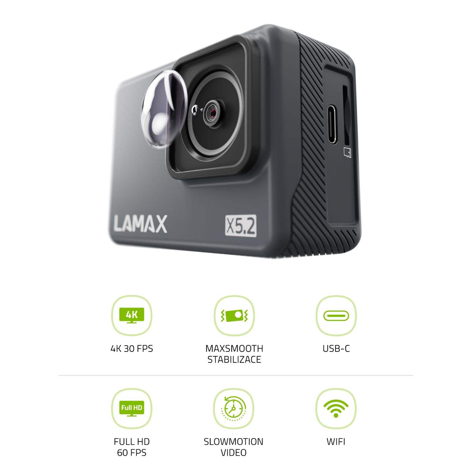 LAMAX X5.2 umí pořídit za jakýchkoliv podmínek dokonale reálné 4K video při 30 snímcích za vteřinu. Uvidíš mušku za letu a každý sebemenší detail, a to s profesionální přesností. I když jsou podmínky hodně akční, elektronická stabilizace MAXsmooth se postará o zklidnění roztřesených záběrů. Taky chceš někdy zastavit čas? S akční kamerou ho můžeš alespoň zpomalit, funkce Slow motion si s tím poradí. Obraz v rozlišení Full HD 60 fps je extra plynulý, tak se pochlub okolí, co všechno jsi zažil.