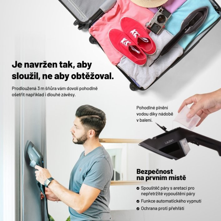 Také se po odchodu několikrát vracíte a kontrolujete, že je žehlička vypnutá? Buďte v klidu, pokud Lauben napařovač zapomenete vypnout, učiní tak po 8 minutách sám.