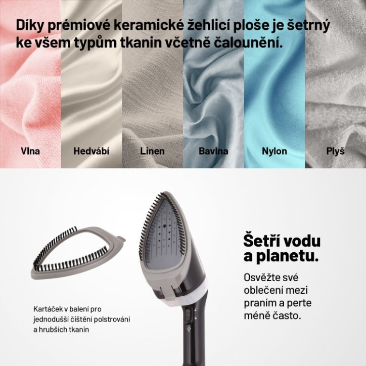Náš napařovač udrží vaše oděvy, čalounění, záclony a další domácí textilie hladké a svěží.