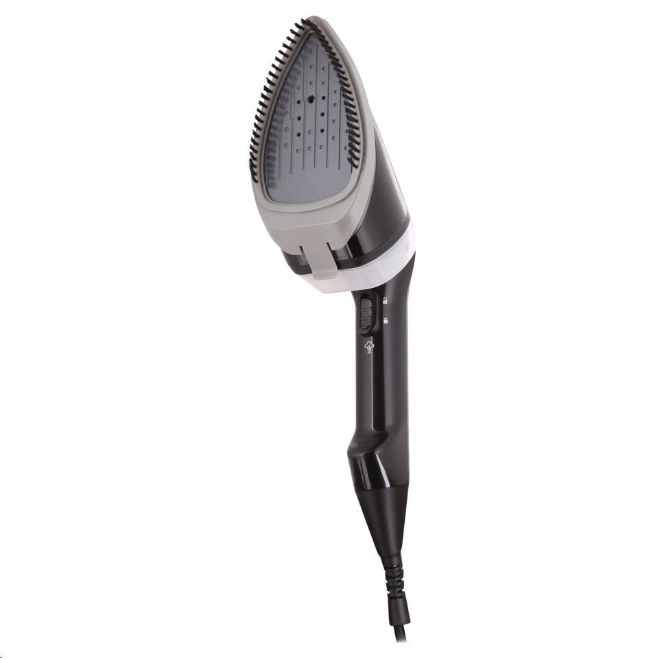 Napařovač oděvů, příkon 1950 W, horizontální napařování HorizIron®, vertikální napařování, suché žehlení, parní výkon 30 g/min, rychlé nahřátí, délka kabelu 3 m, kartáč na hrubší tkaniny součástí balení, dezinfekce povrchů horkou párou, osvěžení čalounění, tlačítko pro výstup páry s aretací, odstranění zápachu mezi praním, teplovzdorný dustbag pro bezpečné skladování, automatické vypnutí, barva černá.... více