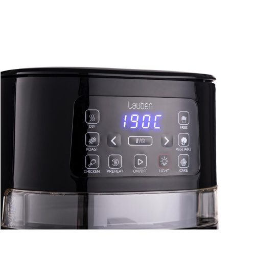 Ovládání Lauben Air Fryer je intuitivní a zvládne jej každý. Požadovaný program si nastavíte pomocí tlačítek a na displeji můžete kontrolovat teplotu a dobu přípravy. Díky průhledné části fritézy a osvětlení vnitřku můžete pokrm snadno zkontrolovat i vizuálně. Všechny komponenty, které se během přípravy jídla ušpiní, lze mýt v myčce nádobí. Třešničkou na dortu je vkusný minimalistický design, díky kterému můžete fritézu bez obav vystavit na kuchyňskou linku, i pokud si potrpíte na estetično.