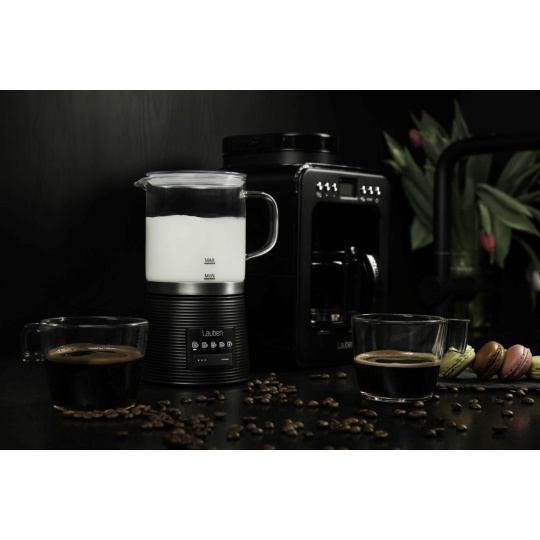 Milovníci nápojů s dokonale našlehaným mlékem si nyní díky napěňovači Lauben Glass Milk Frother 600BG vychutnají i v domácím prostředí či v práci mléčnou pěnu jako od baristy. Skleněná nádoba umožňuje sledovat proces přípravy, je zdraví nezávadná a snadná na údržbu, stačí omýt nebo vložit do myčky. Údržbu usnadňuje i odnímatelné míchátko. Pro lepší manipulaci má základna schopnost otáčet se o 360°. Pomocí variace módů přístroj zvládá teplé i studené napěňování či míchání a speciální mód vykouzlí horkou čokoládu. Svými baristickými schopnostmi nevyrušíte spící rodinu ani kolegy v kanceláři, neboť provoz napěňovače je velmi tichý. Tento praktický designový kousek ohřeje 250 ml a napění 150 ml mléka. Protiskluzové nožičky drží přístroj na místě, k bezpečnosti přispívá i funkce automatického vypnutí.