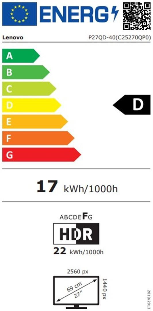 LENOVO LCD P27QD-40 - 27",ECO-IPS,16:9,2560x1440,120Hz,350cd/m2,1500:1,4ms(GtG),HDMI,DP,DPout,DC,USBHub,USB-C,RJ45,Pivot