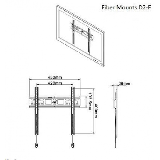 SPOLEHLIVÝ NÁSTĚNNÝ FIXNÍ DRŽÁK PRO ZAVĚŠENÍ TV 26-55", NOSNOST 18KG Televizní držák velmi dobré kvality za skvělou cenu. Pevný držák na všechny typy televizorů, které mají úhlopříčku 26" až 55" a jejichž hmotnost není vyšší než 18kg. Tento držák podporuje VESA standardy 75x75 až 400x400. Po zavěšení televizoru na držák bude vzdálenost Tv od zdi pouhých 26mm. Zajištění televizoru proti náhodnému vysazení je automatickými západkami, které snadno uvolníte pomocí táhel - ta jsou uschována za televizorem. Držák je dodáván včetně montážního materiálu. Levný držák na televizi Fiber Mounts D2-F Technické údaje: maximální zatížení držáku 18kg VESA standardy 75x75 až 400x400 doporučená úhlopříčka televize 26" - 55" vzdálenost televizoru od zdi je 26mm integrovaná vodováha pro snadnou montáž velmi rychlé a bezpečné upnutí televize na držák, stejně snadné uvolnění pomocí 2 táhel kvalitní a pevná konstrukce dodáváme včetně montážního materiálu barva černá záruka 5 let Držák podporuje VESA standardy pro zavěšení televizorů: VESA 75x75 VESA 100x100 VESA 200x100 a 100x200 VESA 200x200 VESA 300x200 a 200x300 VESA 300x300 VESA 400x200 a 200x400 VESA 400x300 a 300x400 VESA 400x400 Na fixní držák Fiber Mounts D2F je možné zavěsit všehny značky a typy televizorů, které podporují některý z výše uvedených VESA standardů a jejichž hmotnost není vyšší jak 18kg. Velikost úhlopříčky není podstatná, uvedené rozmezí je pouze informativní..