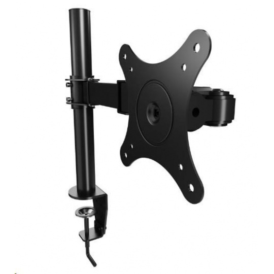 Kompletní specifikace Kvalitní stolní držák poctivé konstrukce Ergosolid NF11 Snadno polohovatelný stolní držák na monitory 10-30", VESA 75x75 a 100x100, otočný, sklopný, nastavení výšky, pivot, nosnost 10kg Nabízíme Vám nový stolní držák na monitory s inovovaným systémem pro nastavení výšky, ke kterému nebudete již potřebovat nářadí. Držák umožňuje nastavení polohy monitoru 3D - otáčení do stran, náklon, rotace, výška a vzdálenost. Uchycení je možné na okraj veškerých stolových desek o síle 20-100mm. Držák podporuje VESA 75x75 a 100x100, nosnost je 10kg. Barevné provedení černé. Záruka 3 roky. Poctivý držák na monitory s úhlopříčkou 10-30 Technické údaje: nosnost 10kg na monitory s úhlopříčkou 10" až 30" podpora VESA 75x75 a 100x100 snadné výškové polohování 200÷340mm nastavení vzdálenosti od nosníku až 435mm otáčení do stran +/- 360° náklon +85° až -15° rotace monitoru - nastavení obrazovky na šířku nebo na výšku systém vedení kabeláže instalace na okraj stolu na všechny stolové desky o průměru 20÷100mm poctivá pevná konstrukce s důrazem na detaily materiál ocel barevné provedení černé záruka 3 roky.