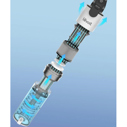 Vysavač Levoit je díky pečlivě vybraným materiálům a komponentům velmi lehký. Manipulace s ním je pohodlná i jednou rukou což oceníte při vysávání pavučin ze stropu nebo při vysávání prachu ze žaluzií.