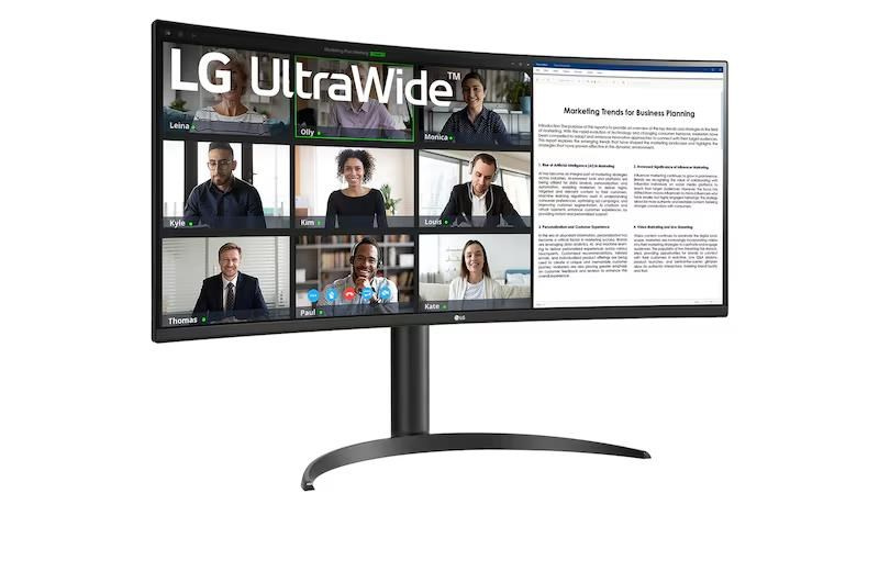 UltraWide™ QHD (3440 × 1440) s zakřivením 1800R a poměrem stran 21:9 je skvělý pro práci, protože umožňuje zobrazit více programů najednou.