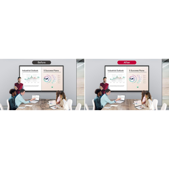 LG CreateBoard Share nabízí funkci bezdrátového sdílení obrazovky, která uživatelům poskytuje flexibilní prostředí pro diskusi. Svou obrazovku mohou sdílet ze svého PC, tabletu nebo chytrého telefonu, což výrazně zjednodušuje proces sdílení a spolupráce na týmových projektech či prezentacích.