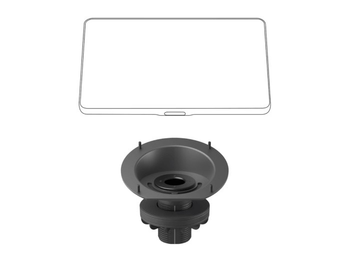Vyvýšený držák, navržený pro stoly v konferenčních místnostech se středovým umístěním otvorů pro průchodky, udržuje dotykový ovladač na místě a navýší úhel sklonu displeje na 30° pro lepší čitelnost a snazší obsluhu při sezení. Vyvýšený držák pro Tap zachovává úhledný vzhled stolu tím, že umožňuje trasovat kabely otvorem pro průchodku, a k tomu rotaci v rozmezí 180° pro praktické ovládání z obou stran stolu.