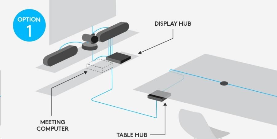 | Kabely/Napájení | Kamera > obrazový rozbočovač Počítač v konferenčním sále > obrazový/stolní rozbočovač Obrazový rozbočovač > stolní rozbočovač Obrazový rozbočovač > reproduktor (x2) Počítač v konferenčním sále > obrazovka (x2) Stolní mikrofon Zásuvka > zdroj napájení (x2) zdroj napájení > obrazový/stolní rozbočovač (x2) |