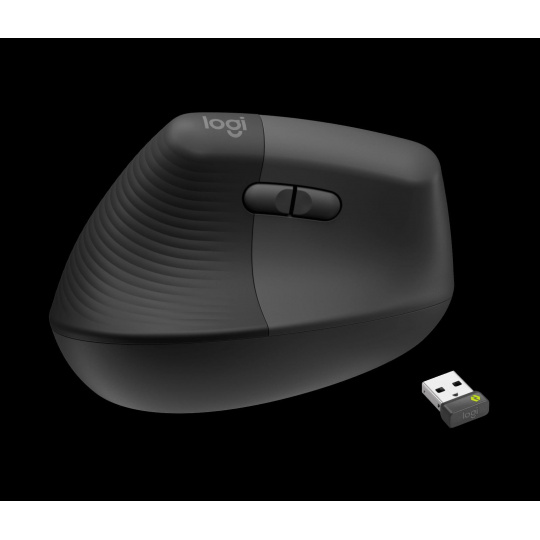 Logitech Lift Vertikální ergonomická myš pro Business, pro leváky, 2.4GHZ/BT, graphite/black