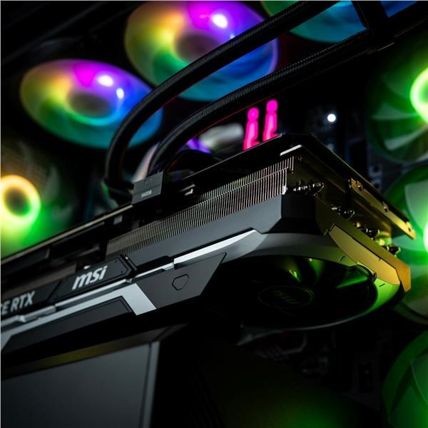 Výkonné vodní chlazení se třemi ventilátory poskytuje tichý a efektivní provoz i při maximálním vytížení. Zajišťuje nízké teploty a dlouhou životnost komponent.