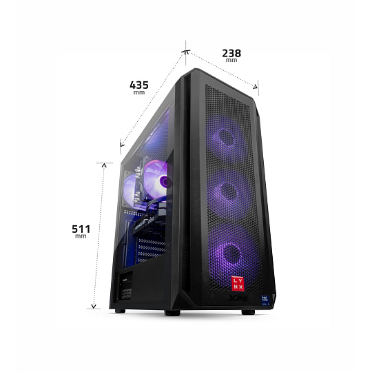 Základem sestavy je deska s čipovou sadou H810 osazená 10 jádrovým procesorem Intel Ultra 5, který disponuje technologií HyperThreading pro plynulejší multitasking, pracující na frekvenci 3.3 GHz, nebo až 4.9 GHz s technologií turbo. Paměti RAM značky Kingston jsou pro sestavy LYNX standardem, v této sestavě se jedná o paměti s kapacitou 16GB DDR5 (2x 8GB). Plynulý obrazový výstup je zajištěný grafickou kartou NVIDIA GeForce RTX 5060, která disponuje 8GB paměti GDDR7. V této sestavě nebrzdí ani uložiště je zde SSD disk 1 TB M.2 PCIe NVMe pro veškerá potřebná data a software. Dostatečné napájení zajištuje 550W zdroj. Sestava je dodávaná včetně nového operačního systému Windows 11 Home.